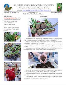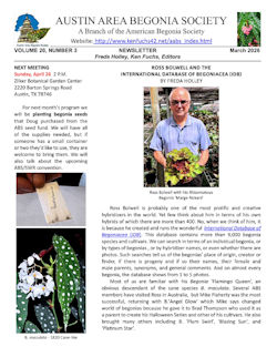 Recent digital versions of the Austin Area Begonia Society Newsletter are now available online, beginning with the June 2013 issue. The newsletter is edited by Nelda Moore.